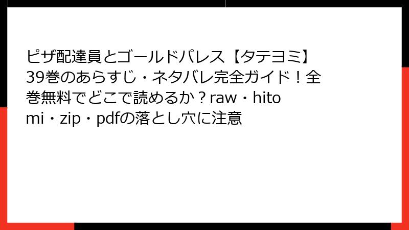 ピザ配達員とゴールドパレス【タテヨミ】 39巻のあらすじ・ネタバレ完全ガイド!全巻無料でどこで読めるか?raw・hitomi・zip・pdfの落とし穴に注意