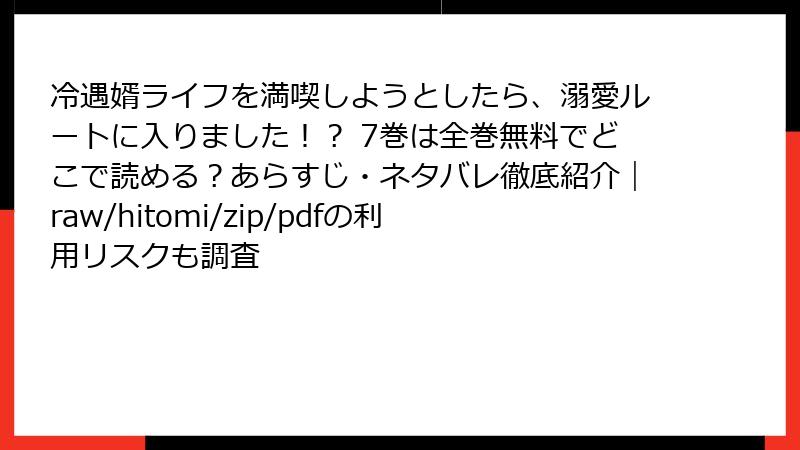 冷遇婿ライフを満喫しようとしたら、溺愛ルートに入りました!? 7巻は全巻無料でどこで読める?あらすじ・ネタバレ徹底紹介|raw/hitomi/zip/pdfの利用リスクも調査