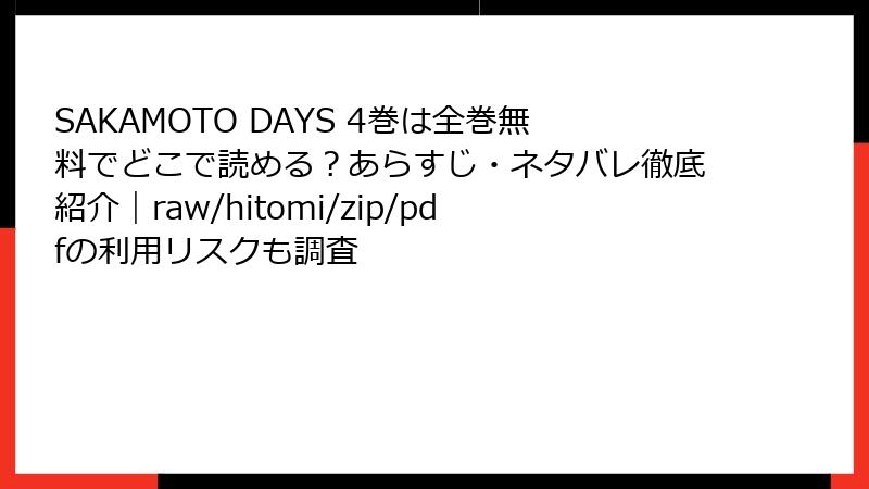 SAKAMOTO DAYSを海賊版サイトで読むリスクの詳細