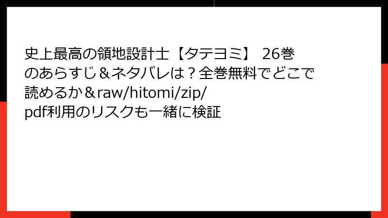 海賊版サイトの利用は、法的・セキュリティ・プライバシー・倫理的な多角的なリスクを伴い、決して推奨できません。「史上最高の領地設計士【タテヨミ】」を楽しむなら、公式アプリや電子書籍プラットフォームを利用し、安全で高品質な体験を優先しましょう。リスクを理解し、賢明な選択をすることで、作品を長く愛せます。