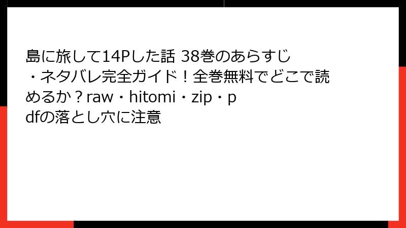 島に旅して14Pした話 38巻をraw/hitomi/zip/pdf/漫画バンクなどの海賊版サイトで読むリスク:法的・セキュリティ面から徹底解説