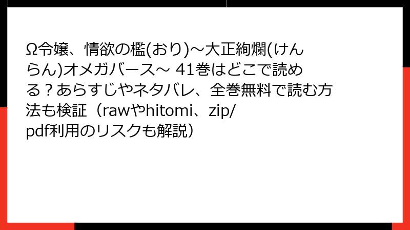 Ω令嬢、情欲の檻(おり)~大正絢爛(けんらん)オメガバース~ 41巻はどこで読める?あらすじやネタバレ、全巻無料で読む方法も検証(rawやhitomi、zip/pdf利用のリスクも解説)