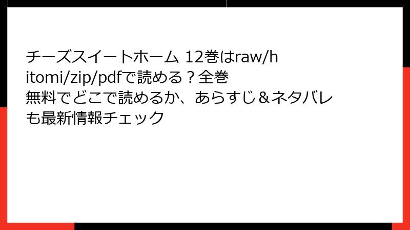 チーズスイートホーム 電子書籍版:どこで読める? 人気サービス別配信ガイド2025年最新情報