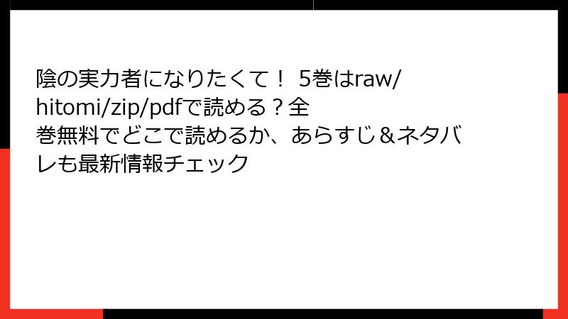 海賊版のzip/pdfやrawファイルは、スキャン品質が極めて低く、文字が潰れたりページが欠けたりするものがほとんどです。hitomi系サイトでは水印(運営者の透かし)が大きく入り、ストーリーの没入感を完全に壊します。また、翻訳が機械的で誤訳だらけ、最新話が未更新で中途半端な状態で配信されることも日常茶飯事。公式版のように美しいカラー頁や特典イラストも一切なく、ただ読みの満足度が著しく低下します。せっかくの『陰の実力者になりたくて!』の迫力あるバトルシーンや細かい表情描写が台無しになり、後悔する読者が続出しています。
