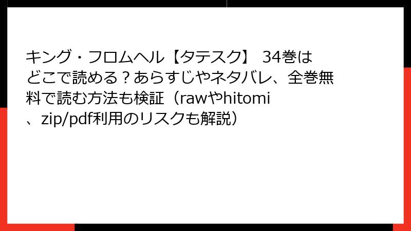 こんにちは、マンガ好きのみなさん! 乱ぼたん先生の人気タテスクコミック『キング・フロムヘル【タテスク】』は、フルカラーの迫力あるストーリーで多くのファンを魅了しています。しかし、rawサイト、hitomi、zipやpdfダウンロード、漫画バンクなどの海賊版サイトで無料で読もうとする行為には、想像以上に深刻なリスクが潜んでいます。この記事では、法的・セキュリティ・品質・倫理面から詳しく解説します。海賊版利用を考えている方は必読です。知らなかったでは済まないトラブルを未然に防ぎましょう!