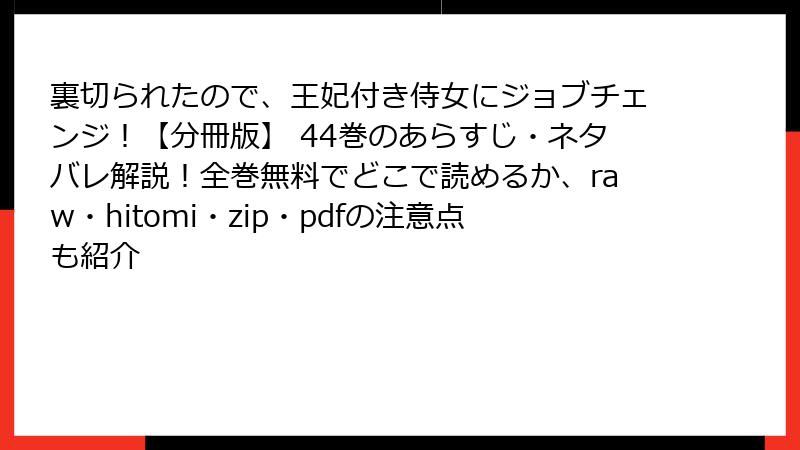 裏切られたので、王妃付き侍女にジョブチェンジ!【分冊版】 44巻のあらすじ・ネタバレ解説!全巻無料でどこで読めるか、raw・hitomi・zip・pdfの注意点も紹介
