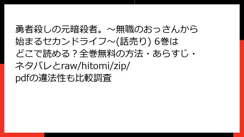 勇者殺しの元暗殺者。~無職のおっさんから始まるセカンドライフ~ を raw/hitomi/zip/pdf/漫画バンクなどの海賊版サイトで読むリスクを徹底解説