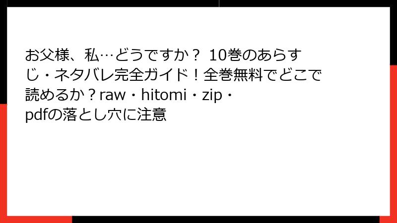 お父様、私…どうですか? を raw/hitomi/zip/pdf/漫画バンクなどの海賊版サイトで読むリスクを徹底解説