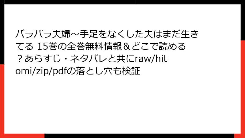 バラバラ夫婦~手足をなくした夫はまだ生きてる を raw/hitomi/zip/pdf/漫画バンクなどの海賊版サイトで読むリスクを徹底解説