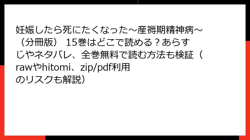 妊娠したら死にたくなった~産褥期精神病~(分冊版)15巻をraw/hitomi/zip/pdf/漫画バンクなどの海賊版サイトで読むリスクを徹底解説