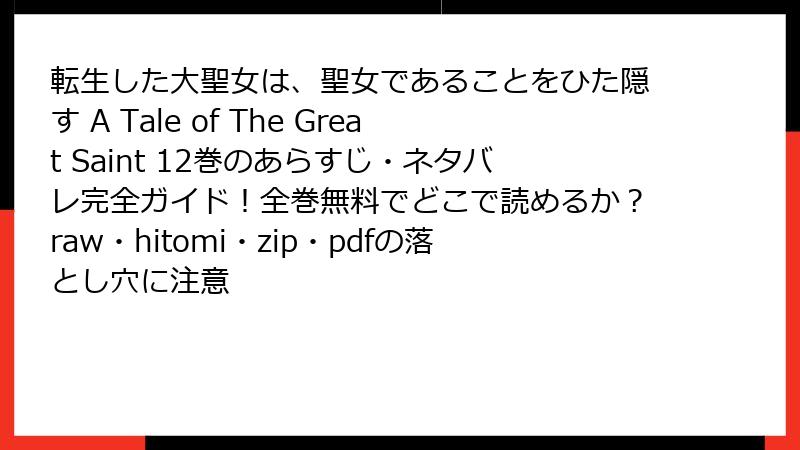 - 転生した大聖女は、聖女であることをひた隠す A Tale of The Great Saint 12巻をraw/hitomi/zip/pdf/漫画バンクなどの海賊版サイトで読むリスク徹底解説