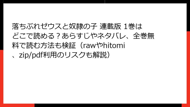 落ちぶれゼウスと奴隷の子 連載版 1巻はどこで読める?あらすじやネタバレ、全巻無料で読む方法も検証(rawやhitomi、zip/pdf利用のリスクも解説)