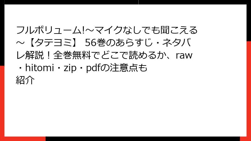 フルボリューム!~マイクなしでも聞こえる~【タテヨミ】 56巻のあらすじ・ネタバレ解説!全巻無料でどこで読めるか、raw・hitomi・zip・pdfの注意点も紹介