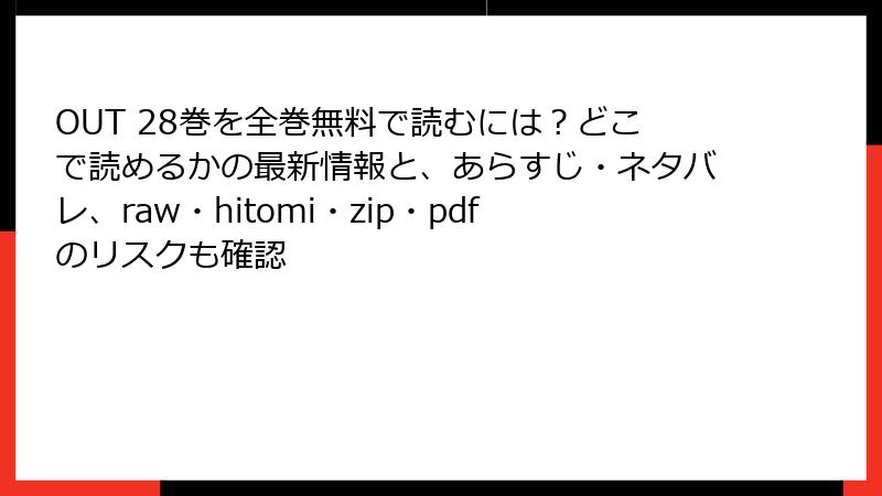 人気不良抗争漫画『OUT』28巻をはじめ、最新刊をraw/hitomi/zip/pdf/漫画バンクなどの海賊版サイトで読もうと考えている方へ。便利そうに見えますが、実は法的罰則、ウイルス感染、個人情報漏洩、業界被害など多大なリスクが潜んでいます。この記事では、2026年現在の最新情報に基づき、シーンごとに詳しく解説。単なる「見るだけ」でも油断禁物です。最終的に正規購入をおすすめする理由もまとめました。未読の方も、これを読めば海賊版の危険性が一目瞭然です!