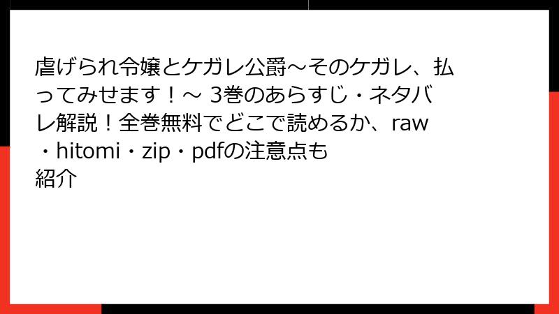 3. 虐げられ令嬢とケガレ公爵~そのケガレ、払ってみせます!~ をraw/hitomi/zip/pdf/漫画バンクなどの海賊版サイトで読むリスクを徹底解説! 法的罰則からウイルス感染まで完全公開