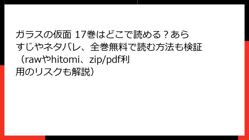 ガラスの仮面 17巻をraw/hitomi/zip/pdf/漫画バンクなどの海賊版サイトで読むリスク:法的・セキュリティ・倫理的危険性を徹底解説