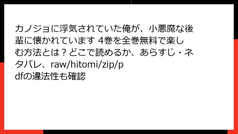 カノジョに浮気されていた俺が、小悪魔な後輩に懐かれています 4巻を全巻無料で楽しむ方法とは?どこで読めるか、あらすじ・ネタバレ、raw/hitomi/zip/pdfの違法性も確認