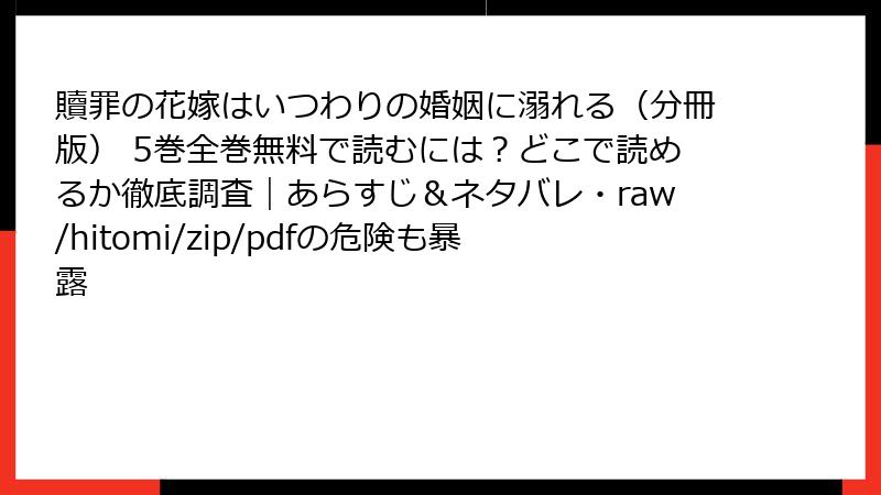 「贖罪の花嫁はいつわりの婚姻に溺れる(分冊版)5巻」をraw/hitomi/zip/pdf/漫画バンクなどの海賊版サイトで読むリスクを徹底解説