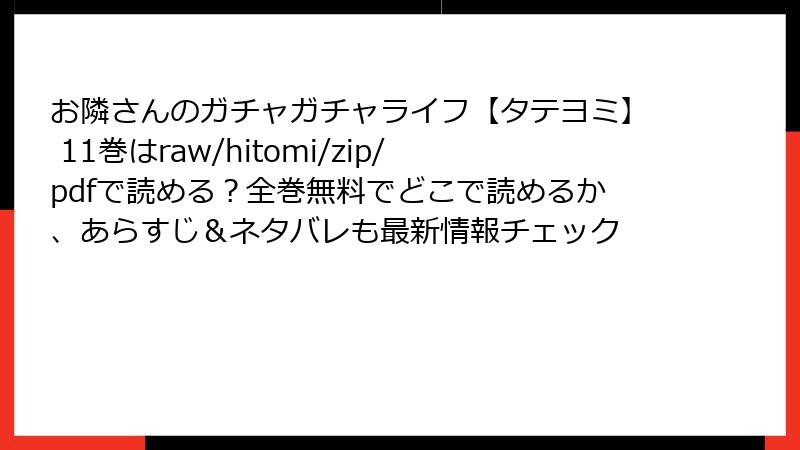 お隣さんのガチャガチャライフ【タテヨミ】 11巻はraw/hitomi/zip/pdfで読める?全巻無料でどこで読めるか、あらすじ&ネタバレも最新情報チェック