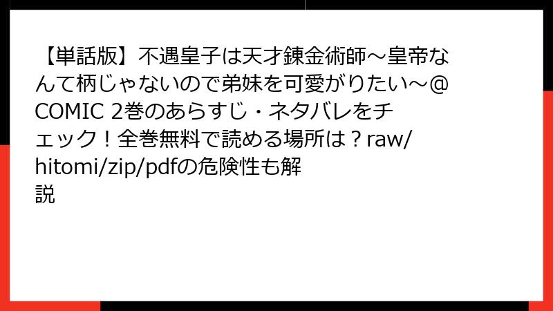 【単話版】不遇皇子は天才錬金術師~皇帝なんて柄じゃないので弟妹を可愛がりたい~@COMIC 2巻 を raw/hitomi/zip/pdf/漫画バンクなどの海賊版サイトで読むリスクを徹底解説