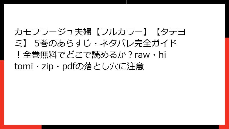 『カモフラージュ夫婦【フルカラー】【タテヨミ】』レビュー総まとめ:読者のリアルな声と5巻の評判を徹底分析