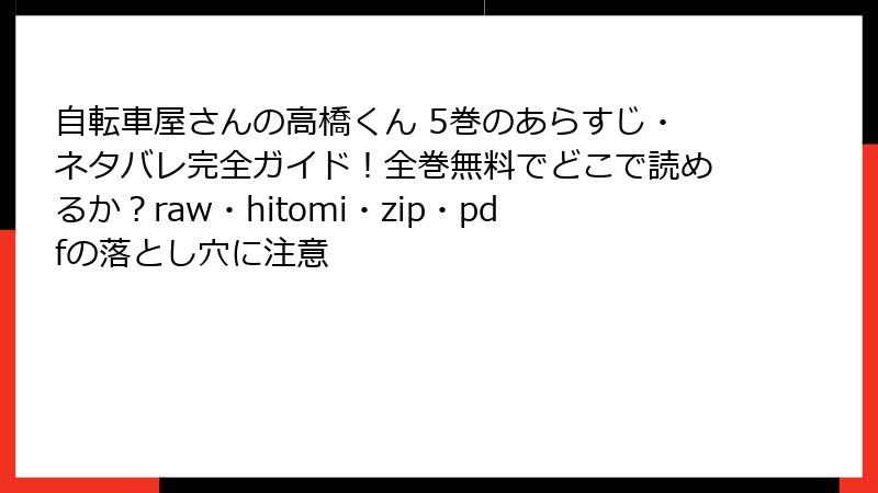 - 自転車屋さんの高橋くん を raw/hitomi/zip/pdf/漫画バンクなどの海賊版サイトで読むリスクを徹底解説!法的罰則からウイルス感染まで全危険性を暴露
