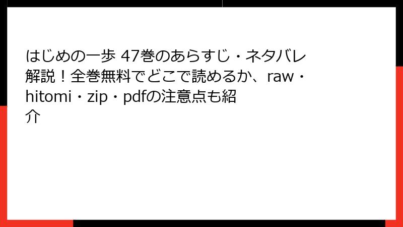 raw/hitomi/zip/pdf/漫画バンクなどで『はじめの一歩』を読むのは、法律違反・ウイルス感染・個人情報流出・クリエイター搾取の四重苦。短期的な「得」より、長期的な損失が圧倒的に大きいです。公式電子書籍サービスや単行本購入で、安全に、安心して、一歩の熱いボクシング世界を満喫しましょう。好きな漫画を守る行動こそ、真のファンです!