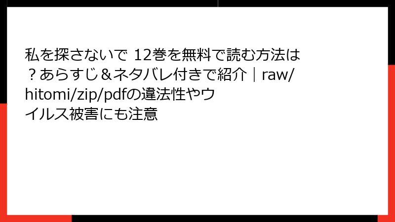 『私を探さないで』12巻を心から楽しみたいなら、海賊版サイトは絶対に避けてください。リスクを知った今こそ、公式ルートで安全に読む選択を。あなたのデバイスと未来を守るためにも、この記事を参考に正しい読み方を心がけましょう!