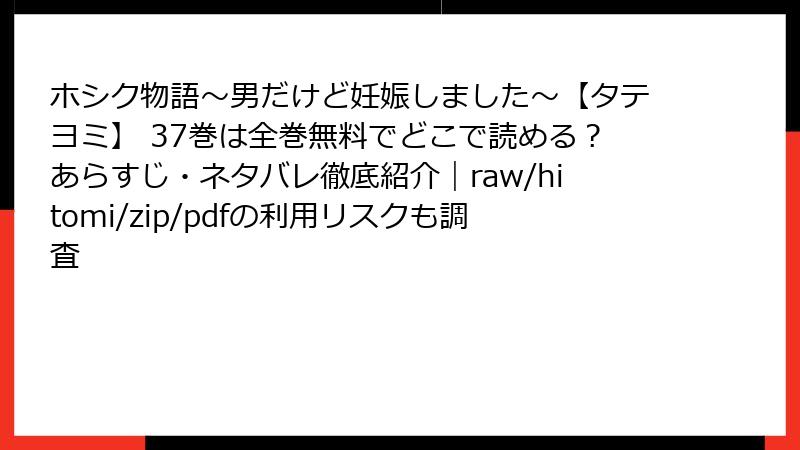 こんにちは、BLマンガを愛するブログ主です! 妊娠生活の切ないラブストーリー『ホシク物語~男だけど妊娠しました~【タテヨミ】』は37巻まで読み進めたくなる魅力満載の作品ですが、rawサイト、hitomi、zip/pdf配布、漫画バンクなどの海賊版で読もうとするのは非常に危険です。便利に見えて実は「後悔の連続」になるリスクが山積み。この記事では、法的問題からセキュリティ、品質、倫理面まで超詳しく解説します。未読の方も、すでに利用を考えている方も必読! 正規ルート以外は絶対おすすめしません。