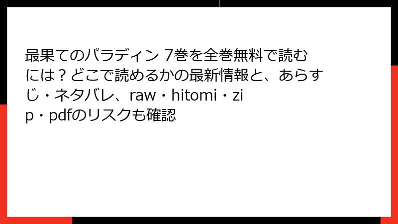 こんにちは、海賊版を何度も経験して地獄を見た元ヘビーユーザーのブロガーです。『最果てのパラディン』7巻の衝撃展開を「無料で今すぐ!」と検索したら、raw、hitomi、zip、pdf、漫画バンク…怪しいサイトがズラリ。でも、1クリックで人生が変わるレベルのリスクが潜んでます。今回は「7巻を海賊版で読むと何が起こるか」を、実体験+最新データでガチ暴露。読み応え重視で