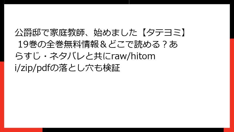 raw/hitomi/zip/pdf/漫画バンクなどの海賊版サイトで『公爵邸で家庭教師、始めました【タテヨミ】19巻を読む行為は、法的罰則、セキュリティ被害、プライバシー侵害、品質低下、倫理的問題という多重のリスクを背負うことになります。一時的な「無料」の魅力に負けず、公式電子書籍や単行本で安全に楽しむことが、作品を長く愛する最善の方法です。ジェイスと公爵の甘く熱い物語を、クリーンな環境で存分に堪能してください。