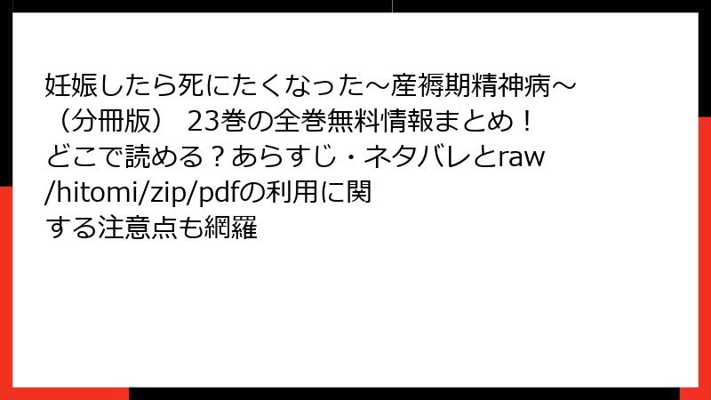 妊娠したら死にたくなった~産褥期精神病~(分冊版) 23巻をraw/hitomi/zip/pdf/漫画バンクなどの海賊版サイトで読むリスクを徹底解説