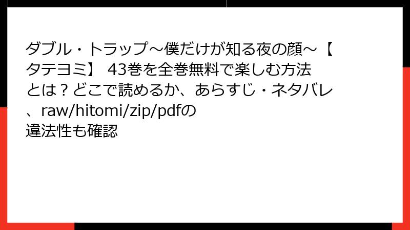 『ダブル・トラップ〜僕だけが知る夜の顔〜【タテヨミ】43巻』をraw/hitomi/zip/pdf/漫画バンクなどの海賊版サイトで読むリスクを徹底解説