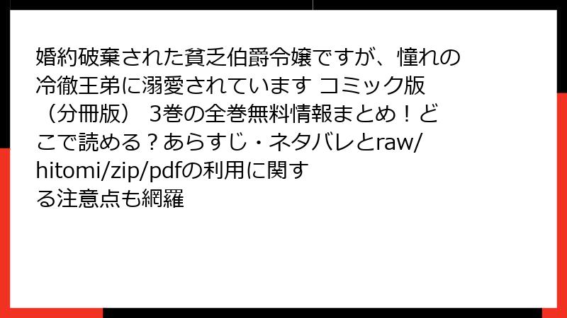 - 『婚約破棄された貧乏伯爵令嬢ですが、憧れの冷徹王弟に溺愛されています コミック版(分冊版)3巻』をraw/hitomi/zip/pdf/漫画バンクなどの海賊版サイトで読むリスクを徹底解説