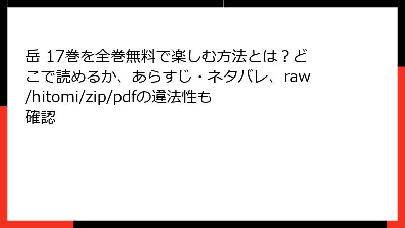 石塚真一氏の山岳漫画『岳』17巻は、ヒマラヤの死の領域で展開する極限ドラマが魅力の人気作です。しかし、raw、hitomi、zip、pdf、漫画バンクといった海賊版サイトで無料で読もうとする行為は、表面的な「得した気分」の裏に、法的・セキュリティ・倫理的な重大なリスクをはらんでいます。この記事では、17巻を含む『岳』シリーズを海賊版で入手・閲覧する際のリスクを、具体的に詳しく解説。単なる「違法だからダメ」ではなく、読者自身や作者、業界全体に及ぶリアルな被害を多角的に掘り下げます。合法購入の重要性を改めて実感できる内容です。
