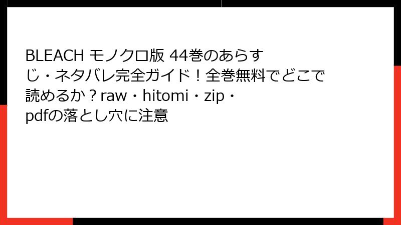 BLEACH モノクロ版 44巻のあらすじ・ネタバレ完全ガイド!全巻無料でどこで読めるか?raw・hitomi・zip・pdfの落とし穴に注意