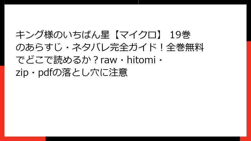 キング様のいちばん星【マイクロ】19巻 raw/hitomi/zip/pdf/漫画バンクなどの海賊版サイトで読むリスクを徹底解説