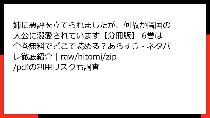 『姉に悪評を立てられましたが、何故か隣国の大公に溺愛されています』6巻をraw/hitomi/zip/pdf/漫画バンクで読む? 絶対にやめるべき5大リスクを徹底解説