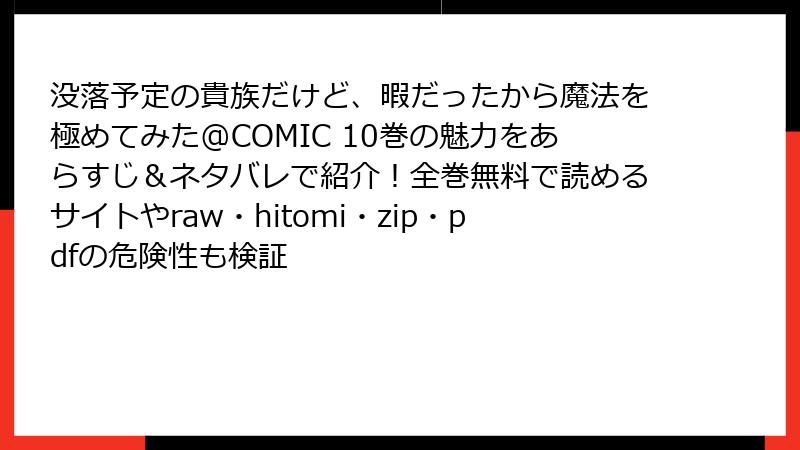 - 【完全警告】『没落予定の貴族だけど、暇だったから魔法を極めてみた@COMIC』をraw/hitomi/zip/pdf/漫画バンクで読むと、人生が“没落”する5つの理由