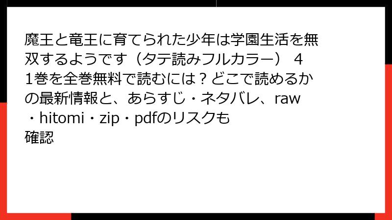 魔王と竜王に育てられた少年は学園生活を無双するようです(タテ読みフルカラー) 41巻を全巻無料で読むには?どこで読めるかの最新情報と、あらすじ・ネタバレ、raw・hitomi・zip・pdfのリスクも確認