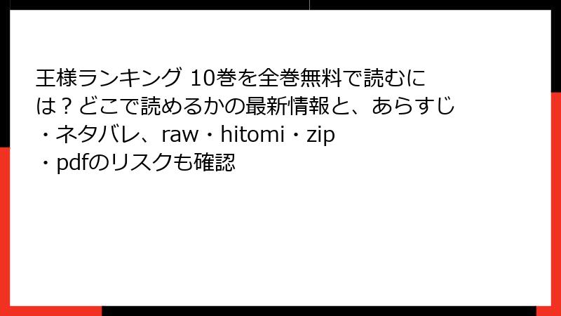 最後に、ポジティブな解決策を。海賊版のリスクを避ける鉄則は、正規電子書籍サービス活用です。ピッコマやマンガUP!で初回割引・ポイント還元を活用すれば、実質無料級。公式アプリの無料エピソードで『王様ランキング』を試し読みし、中古本やレンタルで物理本を楽しむのもおすすめ。VPNやアドブロックは補助的に使い、ファンコミュニティで合法ネタバレ共有を。