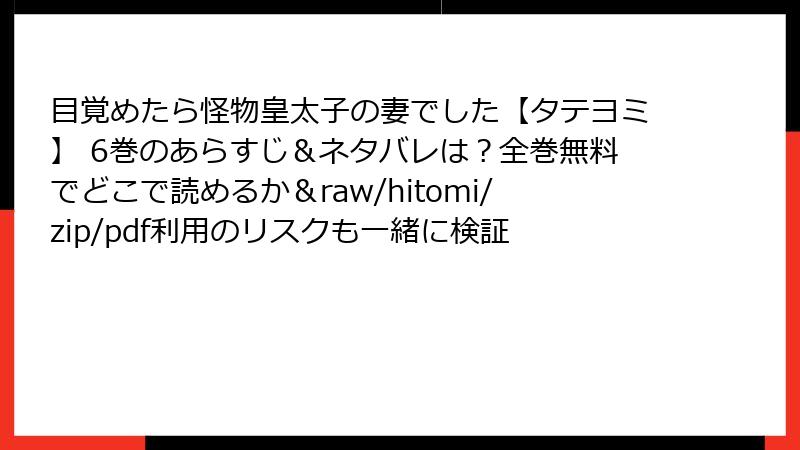 目覚めたら怪物皇太子の妻でした【タテヨミ】 6巻のあらすじ&ネタバレは?全巻無料でどこで読めるか&raw/hitomi/zip/pdf利用のリスクも一緒に検証