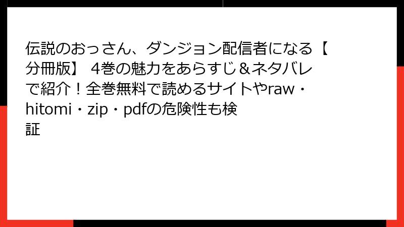 【2025年最新】『伝説のおっさん、ダンジョン配信者になる【分冊版】』レビュー・口コミ・評判総まとめ! 4巻で大炎上した理由とは?