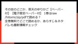 - rawの特徴:生画像中心でクオリティが低いスキャン版が多く、広告が少ない分、ダウンロード誘導が巧妙。