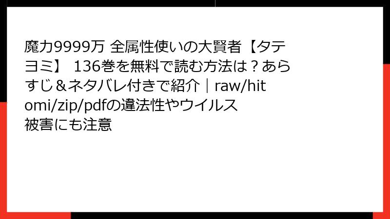 こんにちは、ファンタジー漫画好きの皆さん! 今日のブログ記事では、熱い人気を博しているタテヨミコミック『魔力9999万 全属性使いの大賢者【タテヨミ】』の136巻について、詳しく深掘りしていきます。この作品は、原作・脚本を鏑木カヅキ氏、作画をMUGEN FACTORY氏が手がける、異世界転生ファンタジーの傑作。主人公の最強賢者が現代に蘇り、圧倒的な魔力で周囲を巻き込む壮大なストーリーが魅力です。136巻では、物語が新たなクライマックスを迎え、過去の因縁が爆発的に展開します。ネタバレを含む詳細なあらすじをお届けするので、未読の方はご注意を! 読み応え満点のエピソードを、複数のセクションに分けて解説していきます。