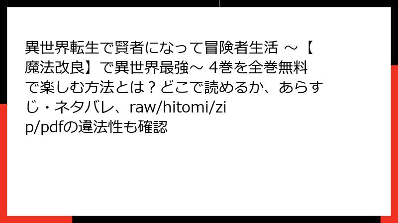 『異世界転生で賢者になって冒険者生活 ~【魔法改良】で異世界最強~』電子書籍版の配信状況:主要サービス完全ガイド