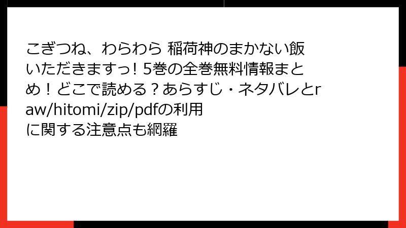 - 『こぎつね、わらわら 稲荷神のまかない飯 いただきますっ!』をraw/hitomi/zip/pdf/漫画バンクで読むリスク大公開! 海賊版の罠にハマる前に知っておくべき全知識
