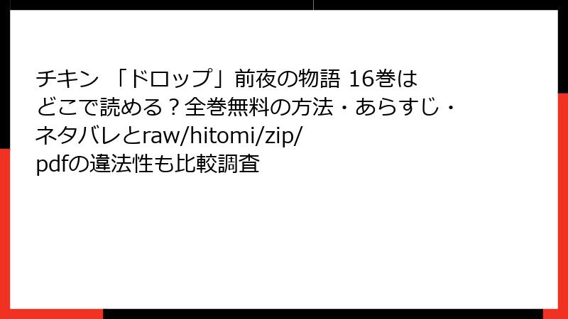 チキン 「ドロップ」前夜の物語をraw/hitomi/zip/pdf/漫画バンクで読むと何が起こる? 海賊版の“本当の代償”を徹底解説