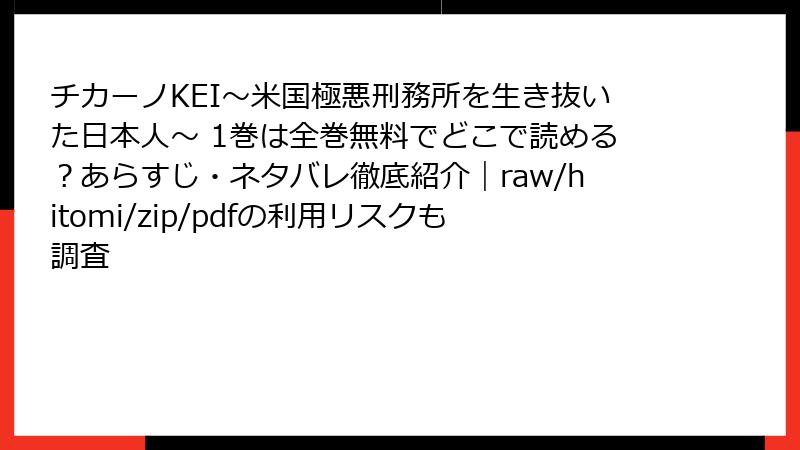 「チカーノKEI」は、KEIさんが命がけで生き抜いた実体験を、読者に伝えるために描かれた作品です。それを海賊版で読むことは、作者の苦労を踏みにじり、自分自身を危険に晒す行為です。たった数百円で安全に、しかも作者を応援しながら読める時代。リスクを冒す理由はどこにもありません。ぜひ正規版で、この衝撃的なプリズンサバイバルを心ゆくまで堪能してください。