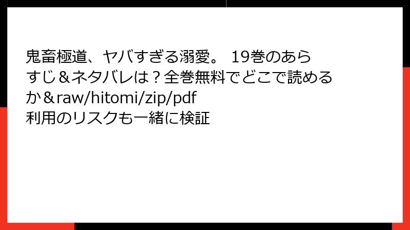 鬼畜極道、ヤバすぎる溺愛。 19巻のあらすじ&ネタバレは?全巻無料でどこで読めるか&raw/hitomi/zip/pdf利用のリスクも一緒に検証